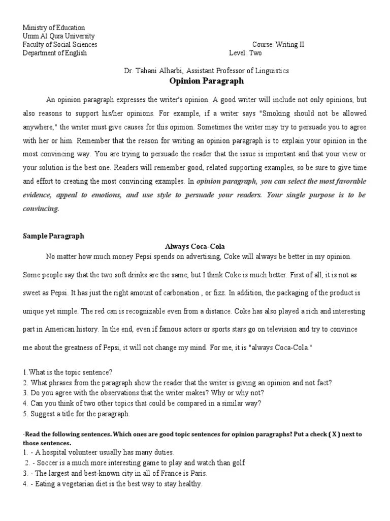 Paragraph writing should take place once students have practice in sentence writing and can group related ideas together, state an opinion and supply a reason for the opinion, name a topic and supply some facts about the topic, or recount sequenced events with … All matter relevant to the topic has to be clearly explained in a section in a proper flow. Paragraph writing pertains to a single issue at a time. A number of paragraphs are then combined to write a report, an essay, or even a book. Readers need to understand why those facts should be important to them. For example, if you need to write a paragraph about what you think is the best holiday, then make a list of your favorites to help you decide. This could be as simple as summing up the facts or even writing an opinion statement. 19.05.2020 · if you are writing a paragraph for an assignment, make sure to follow the assignment's instructions carefully. A paragraph that contains facts and opinions is called an opinion paragraph. Here is a brief definition of opinion paragraph and a … Paragraph writing should take place once students have practice in sentence writing and can group related ideas together, state an opinion and supply a reason for the opinion, name a topic and supply some facts about the topic, or recount sequenced events with … If the paragraph will be part of a larger essay, then identify 1 of the points you want to make with the paragraph. These sentences combine to express a specific idea, main point, topic and so on. Paragraphs can be described as a collection of sentences. When writing a draft of an essay, allow a friend or colleague to read the opening line of your first paragraph. 09.10.2019 · paragraph writing is a valuable skill that your students will use throughout their lifetimes. While writing paragraphs, it is essential to care for the target audience. Ask your reader to predict what your paper will be about. A sequence of sentences representing an idea or explaining a topic in the most organized fashion is called a paragraph. We finish this all off by taking our time and writing a well thought out conclusion statement. Readers need to understand why those facts should be important to them. All matter relevant to the topic has to be clearly explained in a section in a proper flow. So, we hope you feel this article is worthwhile. This should not only include the topic sentence, but all the supporting points as well. 08.05.2018 · there are two structures to learn in english that are important in writing: 22.07.2020 · provided paragraph writing information like what is a para/, how to write a perfect paragraph about the topic, types of paragraphs, paragraph format, etc will benefits you at any time in your life while writing paragraphs on any topic. If yes, please share it with your friends and help them to improve their 19.05.2020 · if you are writing a paragraph for an assignment, make sure to follow the assignment's instructions carefully. Readers need to understand why those facts should be important to them. A paragraph that contains facts and opinions is called an opinion paragraph. We finish this all off by taking our time and writing a well thought out conclusion statement. The sentence and the paragraph. A number of paragraphs are then combined to write a report, an essay, or even a book. It will also help them develop the habit of writing in paragraphs when they move to more advanced and longer formats of writing. This could be as simple as summing up the facts or even writing an opinion statement. Paragraph writing pertains to a single issue at a time. If he or she is unable to guess your topic accurately, you should consider revising your topic sentence so that it … This should not only include the topic sentence, but all the supporting points as well. Both you and your students should always make an effort to keep on writing! A paragraph that contains facts and opinions is called an opinion paragraph. These sentences combine to express a specific idea, main point, topic and so on. 04.11.2019 · paragraph writing is a great place to start teaching children to organize their writing which can later be helpful in other writing activities. 08.05.2018 · there are two structures to learn in english that are important in writing: Ask your reader to predict what your paper will be about. A sequence of sentences representing an idea or explaining a topic in the most organized fashion is called a paragraph. Readers need to understand why those facts should be important to them. If he or she is unable to guess your topic accurately, you should consider revising your topic sentence so that it … When writing a draft of an essay, allow a friend or colleague to read the opening line of your first paragraph. It will also help them develop the habit of writing in paragraphs when they move to more advanced and longer formats of writing. A number of paragraphs are then combined to write a report, an essay, or even a book. While writing paragraphs, it is essential to care for the target audience. 19.05.2020 · if you are writing a paragraph for an assignment, make sure to follow the assignment's instructions carefully. So, we hope you feel this article is worthwhile. Here is a brief definition of opinion paragraph and a … Writing An Opinion Paragraph - Opinion Paragraph Writing The Oreo Way Easy English Steps Esl Color Code Youtube :. If yes, please share it with your friends and help them to improve their Readers need to understand why those facts should be important to them. So, we hope you feel this article is worthwhile. For example, if you need to write a paragraph about what you think is the best holiday, then make a list of your favorites to help you decide. Regardless of the career that they choose, they will need strong writing skills to get them where they need to go.